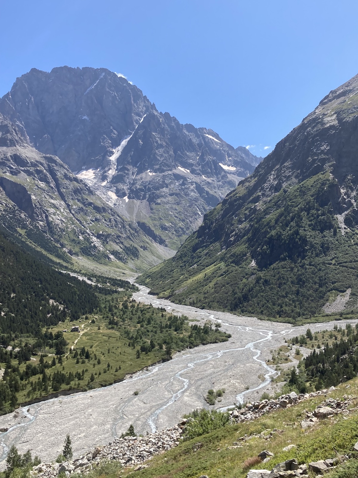 Le chemin de montée/descente au refuge se fait en rive gauche du Vénéon en passant par le camping. (temps d’accès 1h30), la rive droite du Vénéon/ hameau de la Bérarde étant totalement interdit.