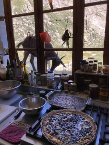 NOS RAVITAILLEMENTS : Les approvisionnements en nourriture et tout matériel/ matériaux (gaz, bois, vaisselle…) se fait par hélicoptère une fois par mois durant la saison estivale, donc ici PAS DE GASPILLAGE, MAIS DU RECYCLAGE ET DU RÉ USAGE! Ensuite l’hélicoptère profite de la montée chargée pour redescendre nos déchets, moins il y en a et mieux c’est ! Donc ici ON TRI LES DÉCHETS (d’ailleurs les poules s’occupent très bien du compost !). Nous ne prenons donc pas les poubelles personnelles des clients, cela va de soit, il vous faudra les redescendre dans votre dos…